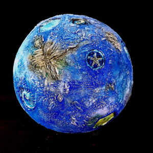 Ceramic, with glazes, underglazes, and embossed expressions of ice, sea creatures and sea plants
